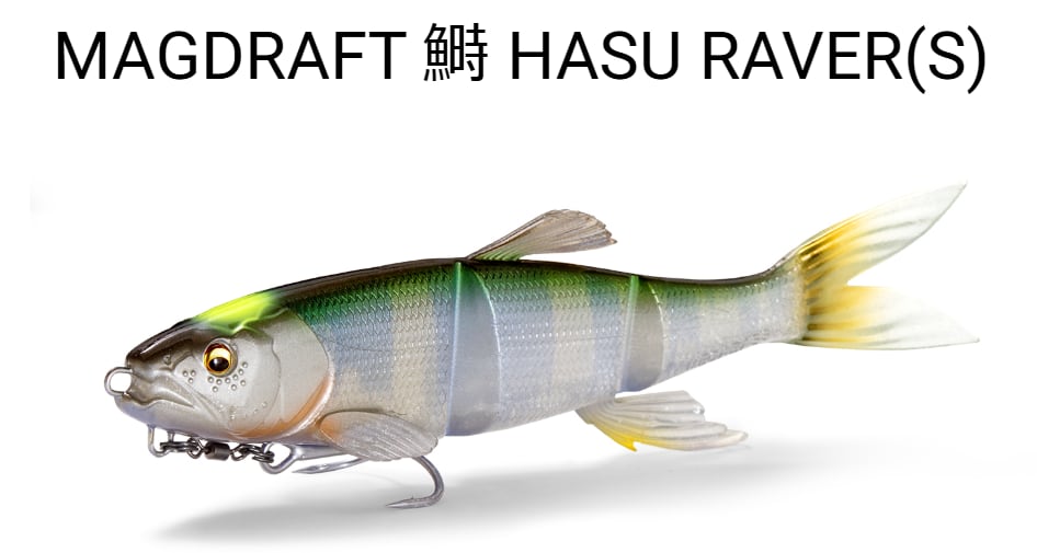 MAGHOLD(PAT.P)システムにより、フックはボディに磁着され、フックの存在をカモフラージュ。タフなターゲットに対する違和感をなくし、フレキシブルでナチュラルなアクションを披露。リザーバーのハスパターンをはじめ、落ち鮎、ウグイなど大型のベイトパターンにアジャストするHASU RAVERは、従来スイムベイトの誘いを見切ったターゲットに異次元の釣獲力をいかんなく発揮します。
