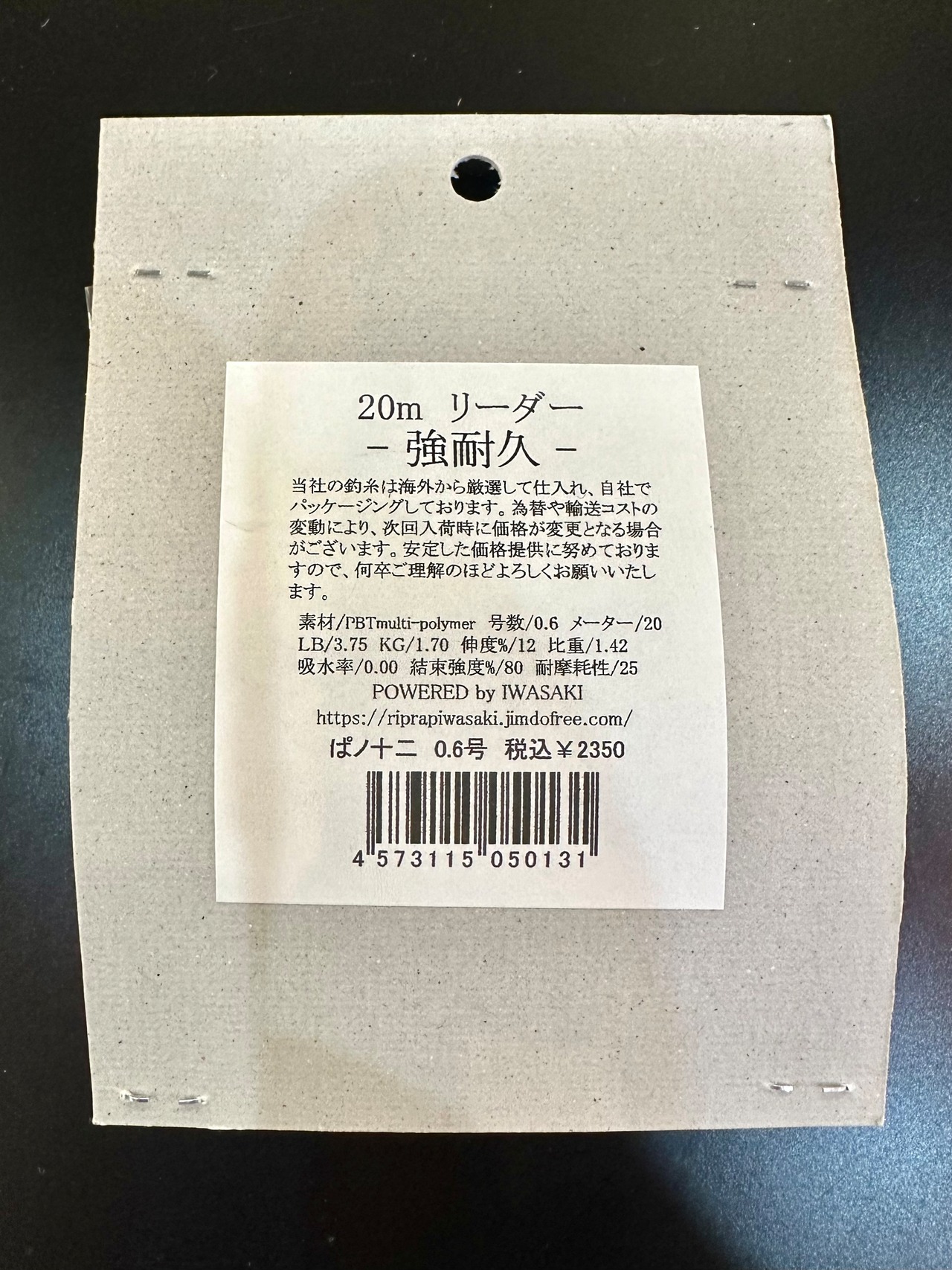 高硬度フロロリーダーに近い感じでかなり硬く感じますが、軽量ルアーの泳ぎに影響しない柔らかさを持たせつつ、それでいてヨレづらい硬めの質感に落ち着きました。