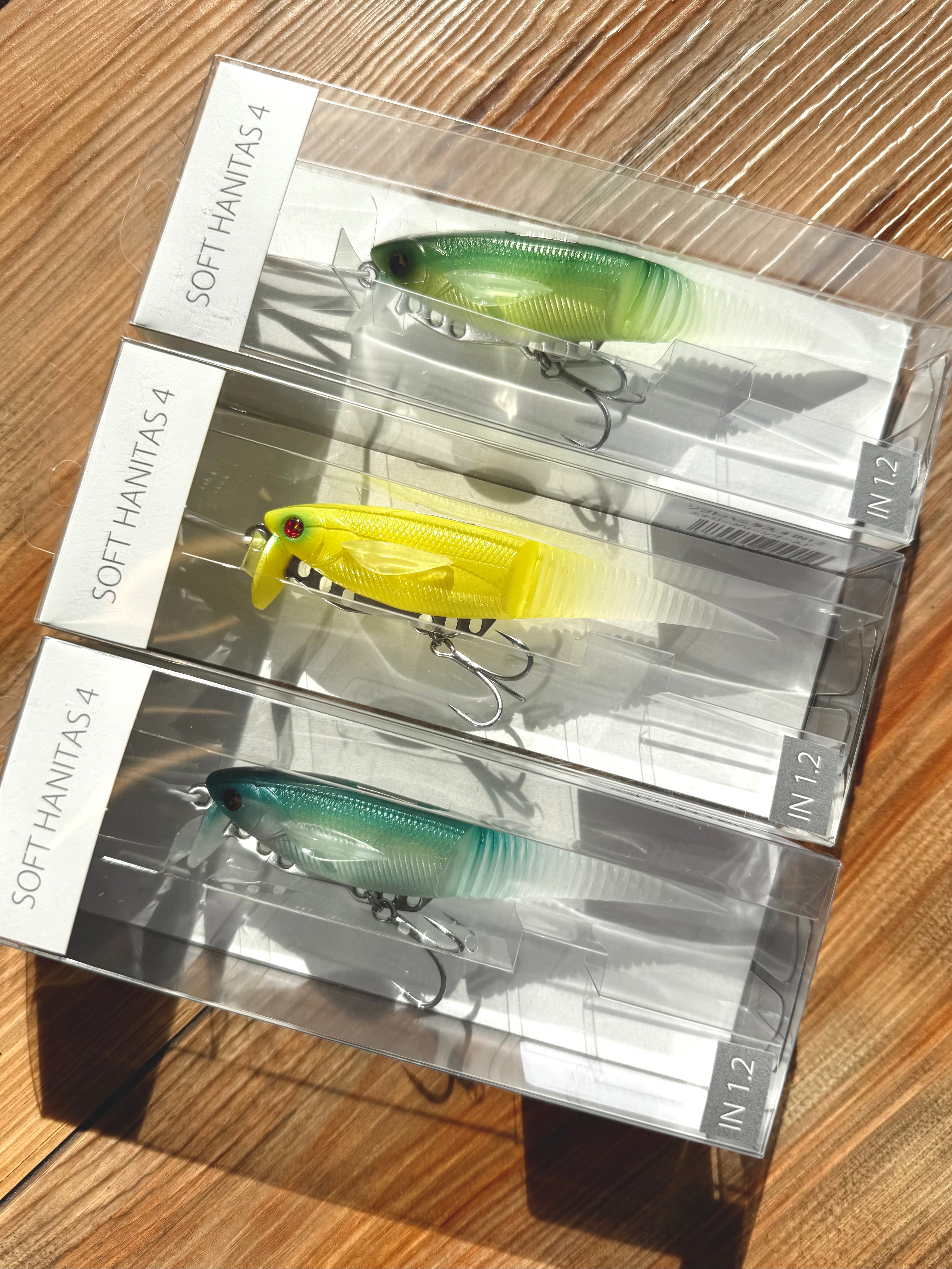 エラストマーのしなやかさと耐久性を備えたソフト素材のハニタスです。ヒレ角度を切替できるソフト版「クウィング(PAT)」と「イン(PAT.P)」の2つのシステムを搭載。インとは、ルアー内部の部品交換により、フィールドやターゲットに適した機能を今すぐインストール(Install Now)できる機能です。※開封後すぐに釣りをお楽しみいただけるよう、トレブルフック(アシストフック&ウエイトの役割)を標準装備しています。
