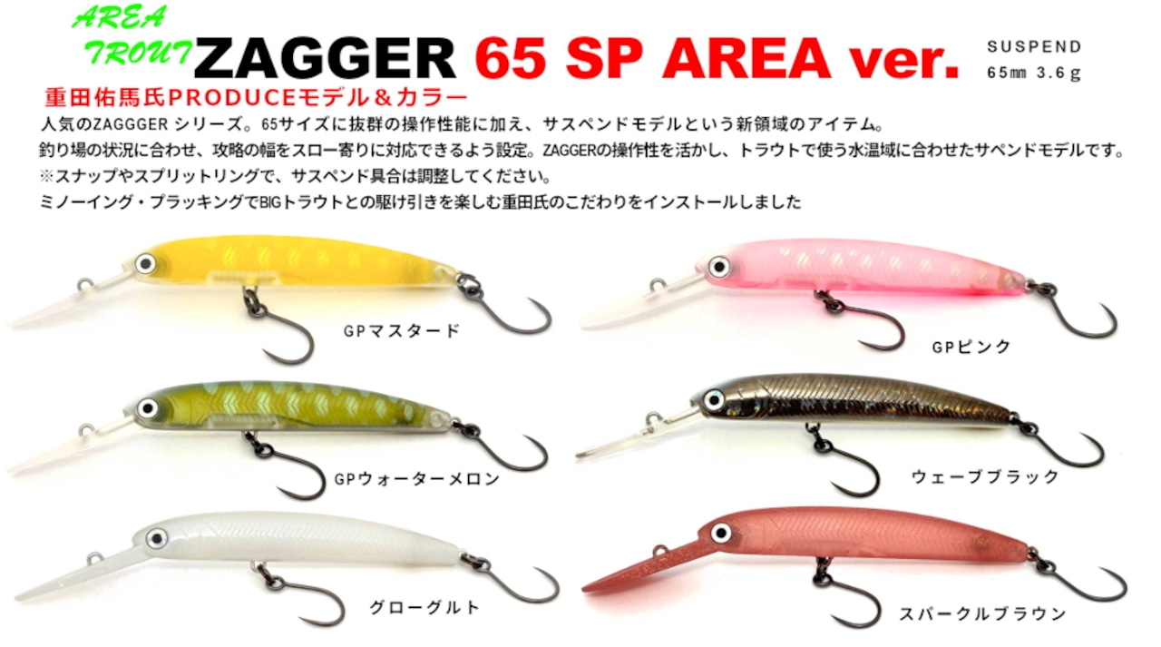 人気のZAGGERシリーズ。65サイズに抜群の操作性能に加え、サスペンドモデルという新領域のアイテム。釣り場の状況に合わせ、攻略の幅をスロー寄りに対応できるよう設定。ZAGGERの操作性を活かし、トラウトで使う水温域に合わせたサスペンドモデルです。