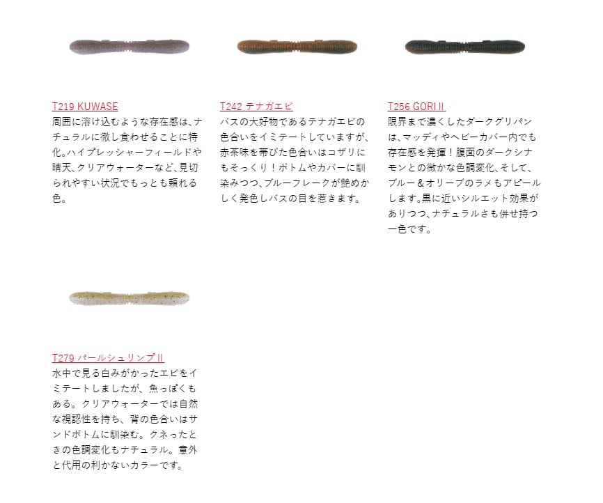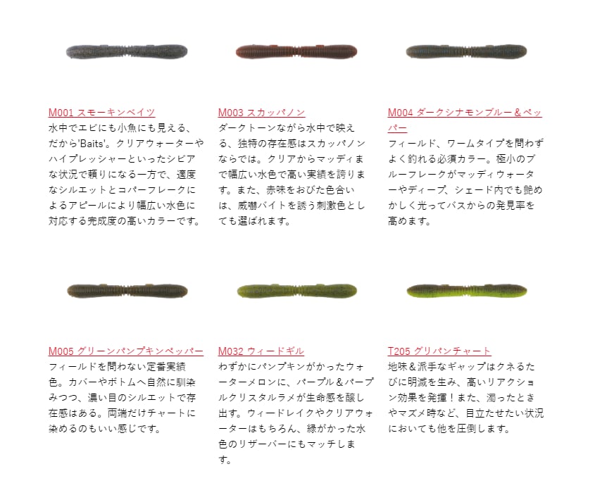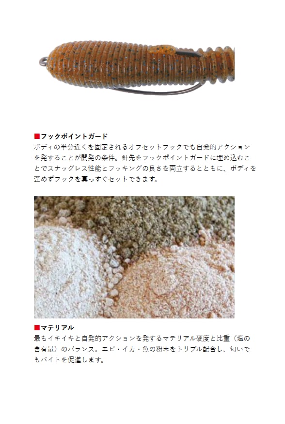 ・推奨フックサイズ:オフセットフック #1/0~#2/0・ワッキーフック #2