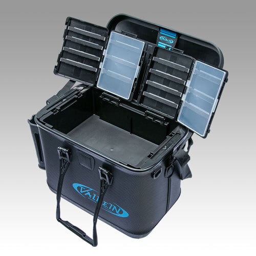 エリアトラウト完全対応!BM-5000、VS-7090Nにセット可能な、中皿一体型収納。エリアトラウトでの使用を想定し、深型の中皿にスプーンなどを収納できるケースがセットされた変幻自在なシステム収納設計。セットされているケースは立ち上げて固定ができ、観音開きで使用できるので、手返しを重視するトーナメンターも納得の使用感。ケースは最大2個取り付けられ、それぞれ観音開きで両サイドにはみ出るように広げることも可能だが、1個だけ装着して使うこともできるので物量に応じて選択可能。