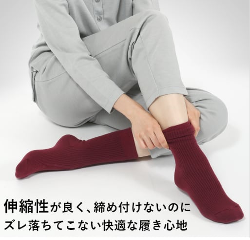 ●ラクに伸びて締め付けないのにズレ落ちてこない編み上げで快適な履き心地を実現。冷え寒さに弱い方やお年寄りはもちろん、屋外のお仕事の方や冬のスポーツを楽しむ方にもオススメです。