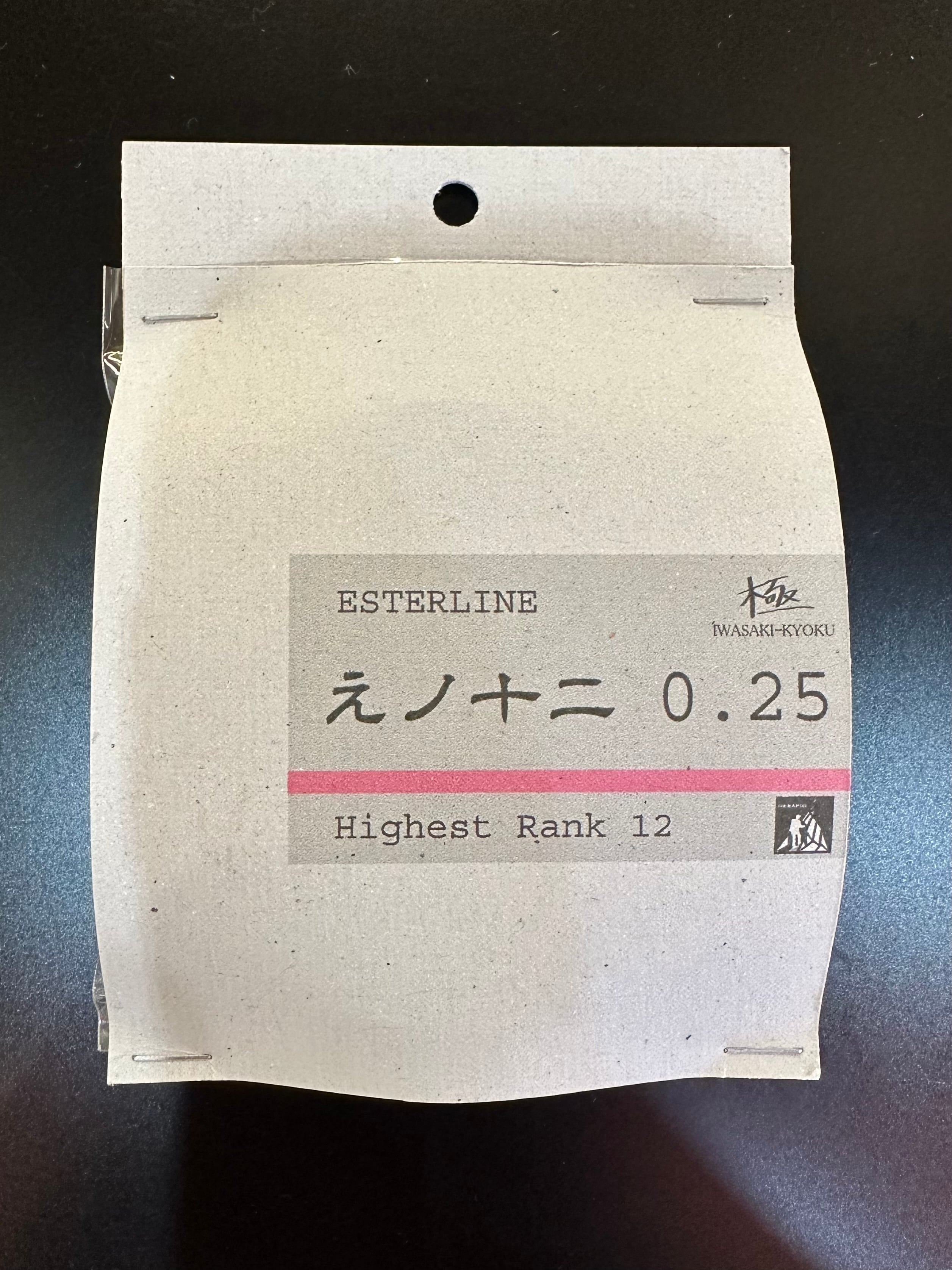 テスト段階で数パターンの伸度を試した結果、昨今のエリアトラウトの釣りには欠かせない伸度12%で作りました。エステルラインとフロロラインの間を埋めてくれるイメージの伸度です。