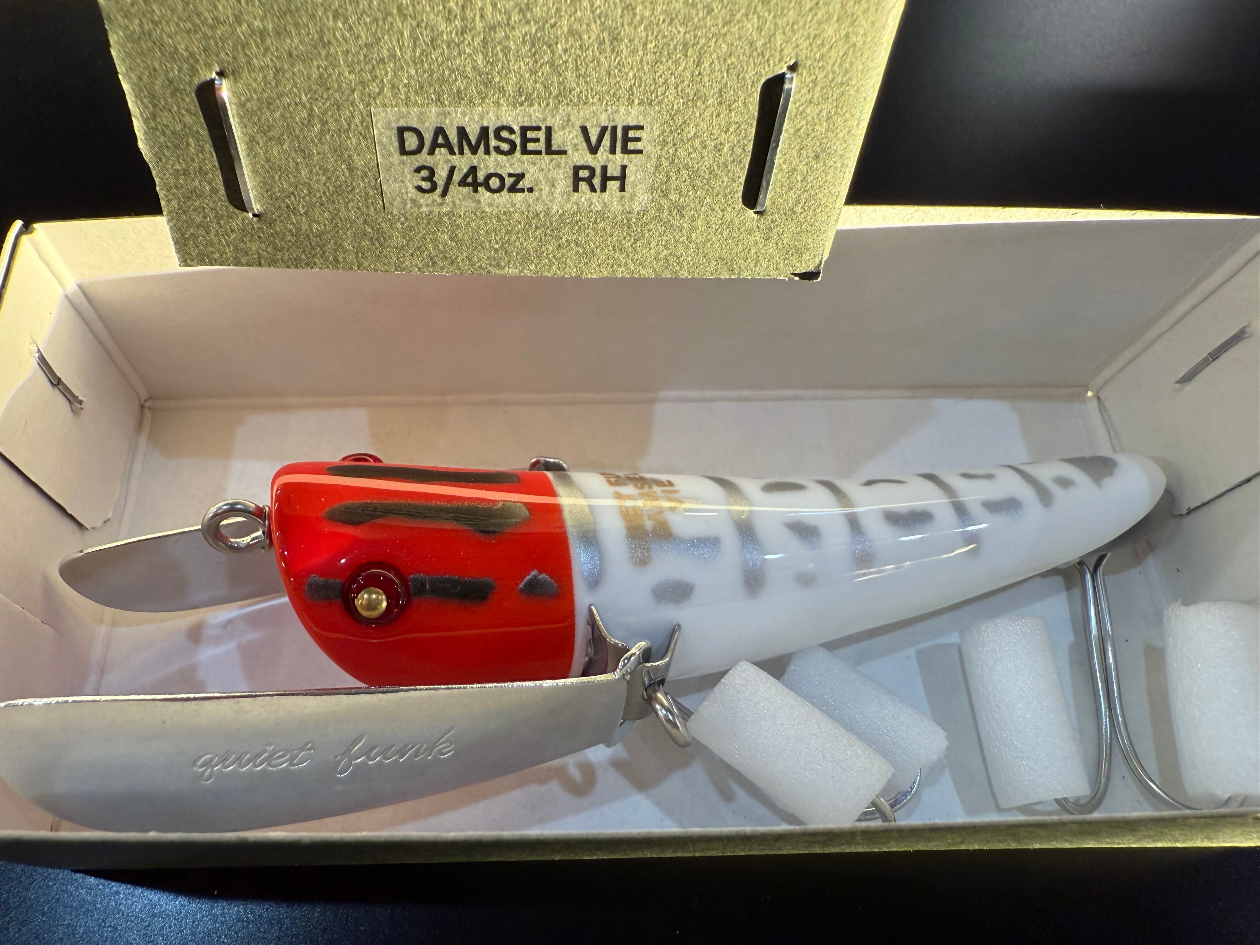ダムゼルとは、糸トンボ(ダムゼルフライ)から命名したもので、胴体から尻先にかけて細く反り上がったシェイプが特徴。ヘッドが大きくカーブを描いたフェイスで水を受け流すデザイン。立ち上がりが早く、繊細なロッドワークにも機敏に反応する。新作THINドラゴニアウィングを搭載したモデルで、スローリトリーブでピッチの早いアクションが秀逸である。
