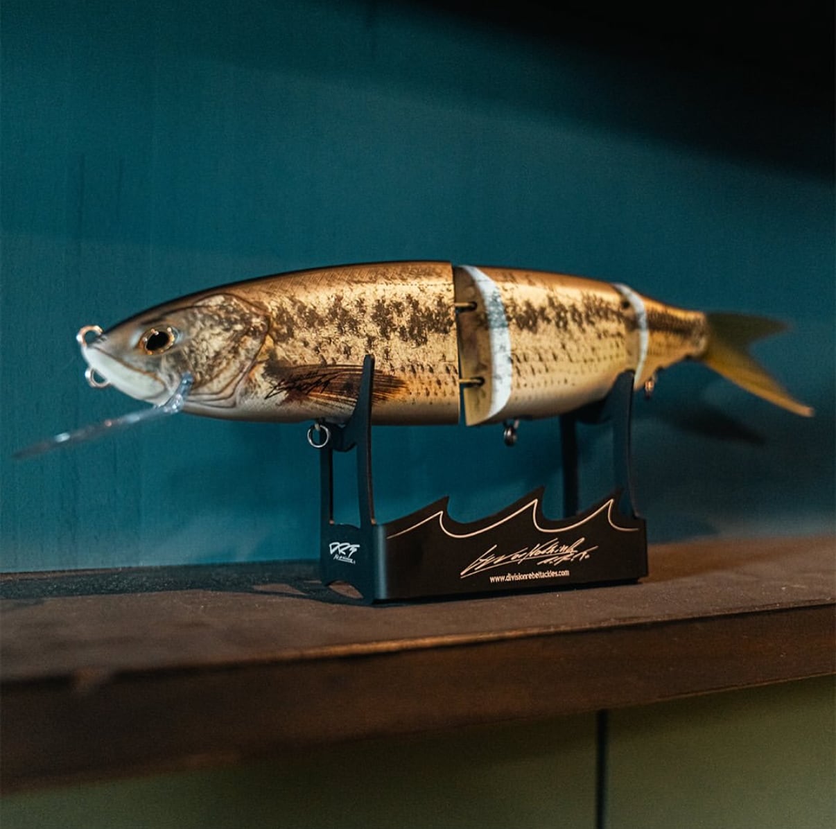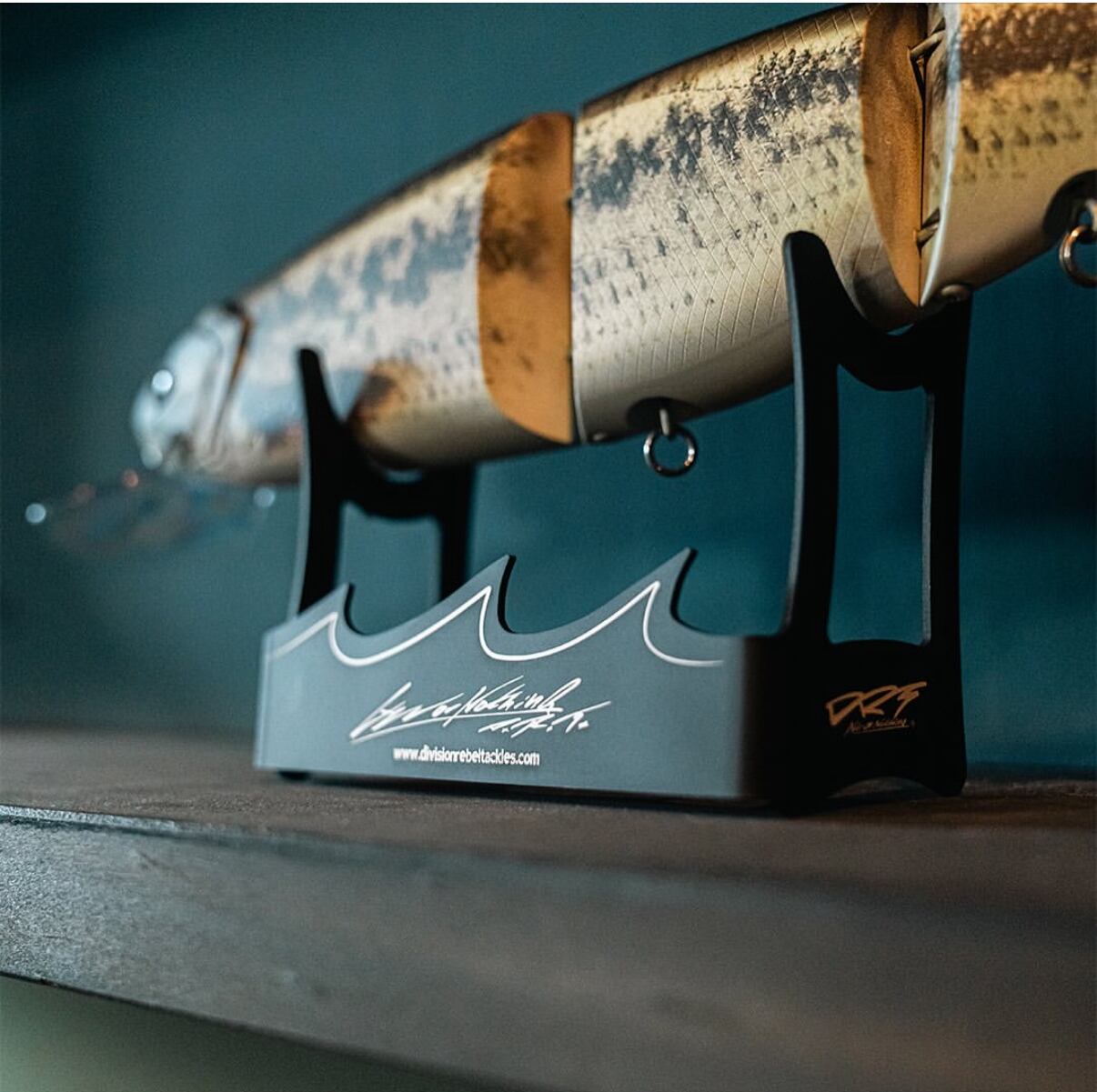 ブラックアルマイトのフレームに、”All or Nothing""DRT"ロゴのレーザーマーキングを施しました。前モデルに比べて、ルアー接地面を大きくしたことで、大きなルアーも安定してディスプレイすることが可能です。