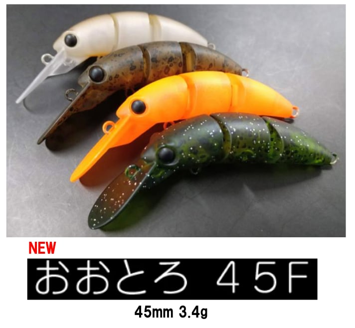 クランクの基本はゆっくりと巻くこと。そのシンプルな釣り方の中にトラウト達を狂わせる様々な要素を詰め込んだのがおおとろです。着水した瞬間から大粒サイズで存在をアピールし、よりレスポンシブになった3連結ボディは一定のスピードでトロトロと巻くことで艶かしさを増して魚を誘います。そしてトロトロ巻いているうちに不規則な喰わせのアクションに気付くことができたならトロイストまであと一歩。信じて巻き続ければ安定した釣果をもたらすジョイントクランクです。