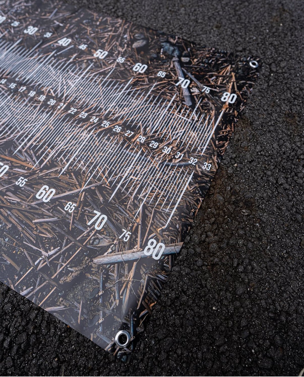 ~80cmMAXです。四隅にはハトメ加工を施しているため、フック等で引っ掛けておくことができるので、使用後の乾燥時に便利です。