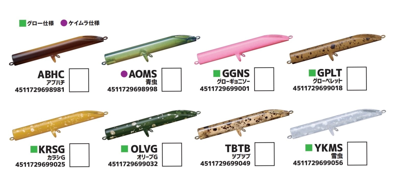 ボディの水押しさえも極力排除するため、ウォータースルーのチューブ構造を採用。デッドスローリトリーブでのアクションはローリングオンリーで水の波動を立てず、視覚的変化によってのみアピールします。ロッドを立てて表層を引けばI字系の波紋を作ることが出来るため、虫の多い時期にはトップウォーター的な使い方でスリリングな釣りが楽しめます。