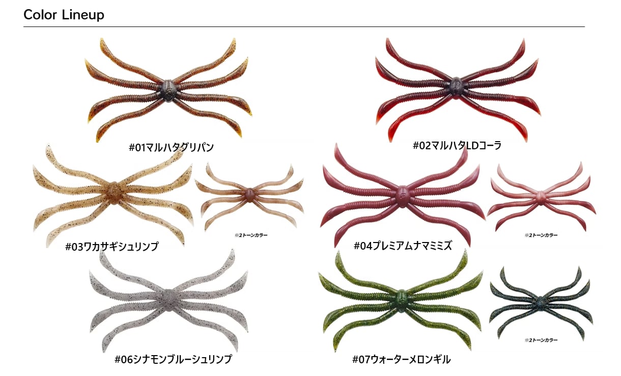 今回、マガテールをベースにその繊細さと強波動を融合した異次元のアクションをワーム単体で再現しました。一体化になり煩雑だったセッティングを不要となりオリジナル以上の水押しの強さにより集魚力も格段に向上しました。