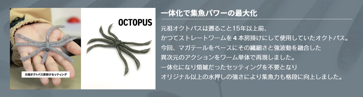 元祖オクトパスは遡ること15年以上前、かつてストレートワームを4本房掛けにして使用していたオクトパス。