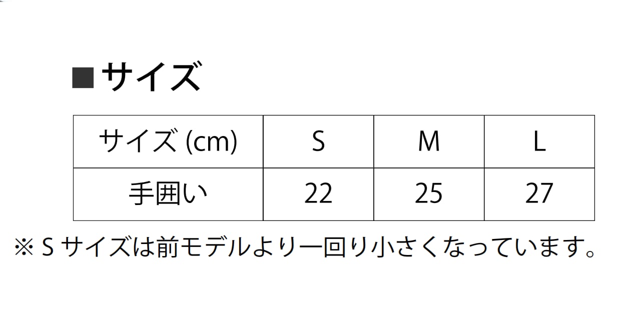※Sサイズは前モデルより一回り小さくなっております。