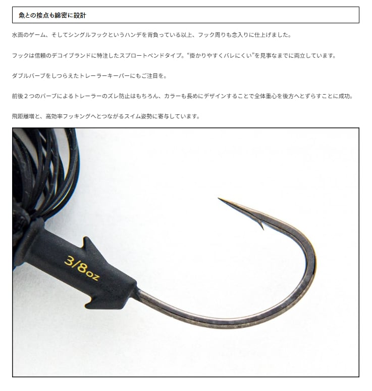 ・T字型ヘッド形状-スイム姿勢の水平保持と障害物から針先を守る