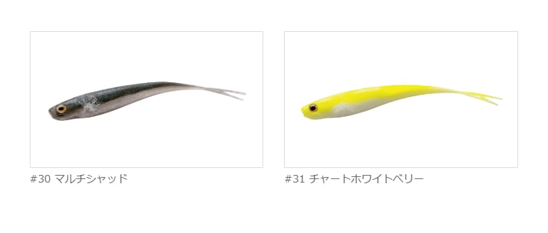 ジグヘッドやホバストでは弱いロールとテールの靡く複合アクションでバスを誘い出します。