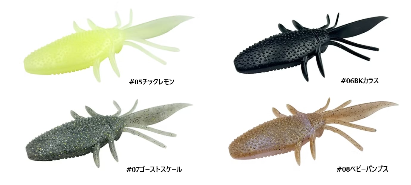 中層のベイトをバスが中層でそのまま捕食するパターンの割合が昨今のトレンドから見ても大きく増えており、こうした時代背景と兼ねてからのワイド系ワームの在り方に着目し今の時代に必要と考えたのがこの“鳥の化け物”GOOBUMです。