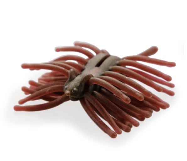 対カバー性能に特化した「剛毛エラストマー」。野良ネズミのボディは「根掛りしにくく」「フッキングが良い」形状であることは、数々の釣果で証明済み。この性能は、フッキングが悪くなりがちな、エラスマー製ルアーには極めて重要な要素です。そしてアクションは、毛の一本一本をわずかな水流で動くように長さと硬さを調整。驚くほど複雑なアクションを演出することができます。