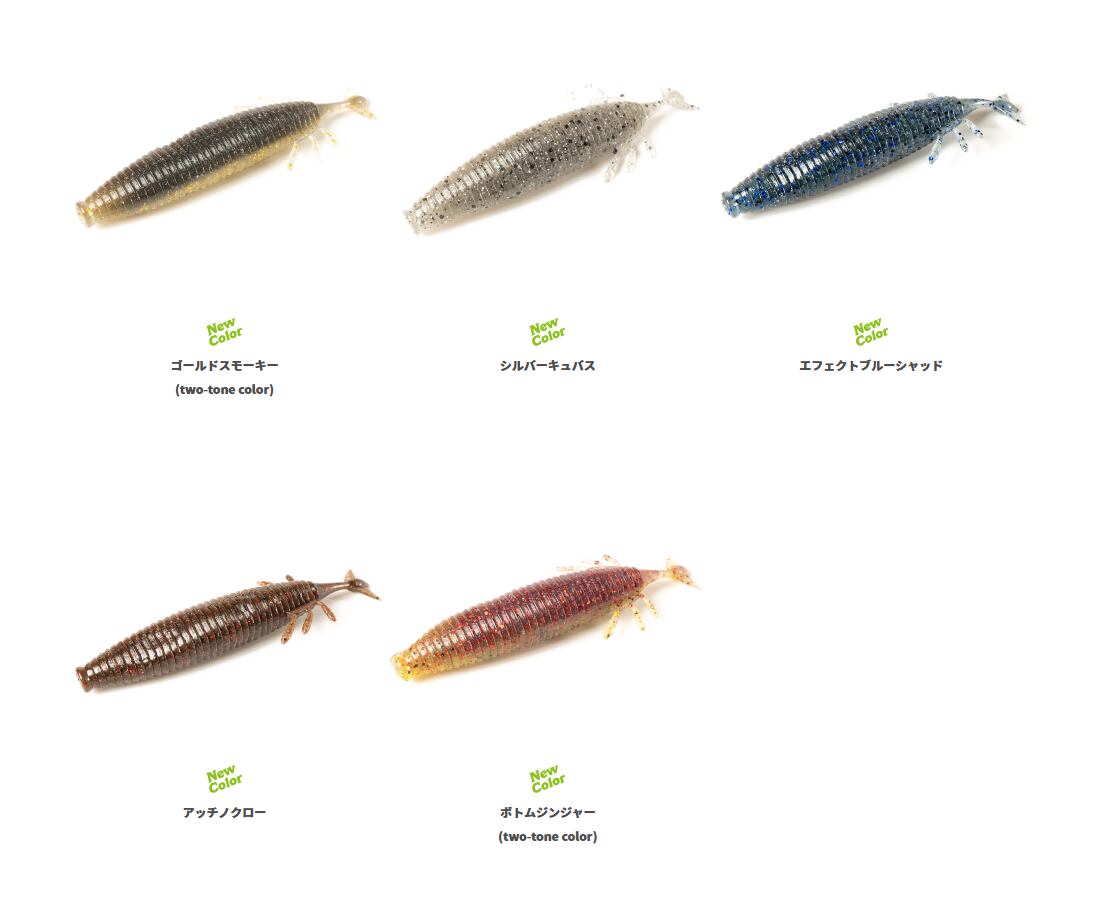 ノーシンカー、ネイルリグNSを主体とした【不規則フォールベイト】2/0.3/0.4/0 の太軸から細軸のオフセットフックを主にノーシンカー、ネイルリグを軸にテスト。リフト&フォール、ダート後の【間】で喰わす事を意識したソフトベイトになります。