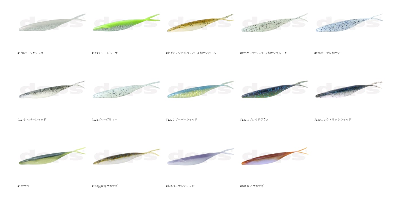 ノーシンカーでは、アユやハスが水面へ逃げ惑い、時折勢いよく水面から飛び出すような跳ね上がるダートアクション、スプリットショットやキャロライナリグのボトムレンジでも、バスに気付きボトムから突然現れ姿を隠すような跳ね上がるイメージでアクションすれば、“サカマタシャッド”の性能を発揮し、いとも簡単にバイトへと導いてくれます。