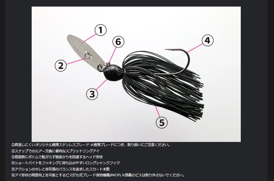 AKチャターの強みは、強波動、強振動による "魚を呼ぶパワー" と、タフなバスでさえバイトに持ち込む "タイト千鳥アクション" 。"AKチャター Jr." は、その遺伝子を引き継ぎながら、小さなシルエットが効果的なシチュエーションに対応すべく、コンパクト化。ビッグバスのファイトに耐える強度だけでなく、繊細なタックルでの使用も想定し、フックを厳選しました。