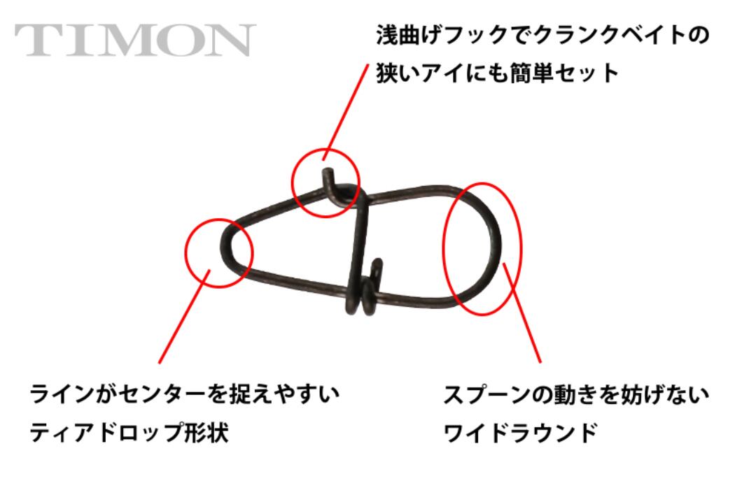 ティモンルアーのポテンシャルを発揮する為に設計されたe-snapの高性能はそのままにさらに進化した”e-snapⅡ”は、強度に優れ変形し難い高強度ステンレス素材にグレードアップ、さらにストレスを感じさせない為に細部まで徹底的にこだわったトラウトゲーム対応ライトスナップです。