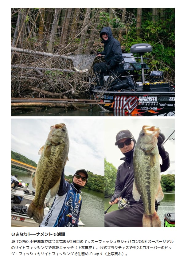 スプークしたバスの、わずかに残されたリアクション本能を揺さぶり、ライトリグで攻め抜かれたはずのポイントからアベレージ・オーバーを連発させ、高活性時には小さい奴からデカい奴まで、根こそぎバイトさせてしまうだけの威力を秘めたマジックベイトとして活躍してくれます。