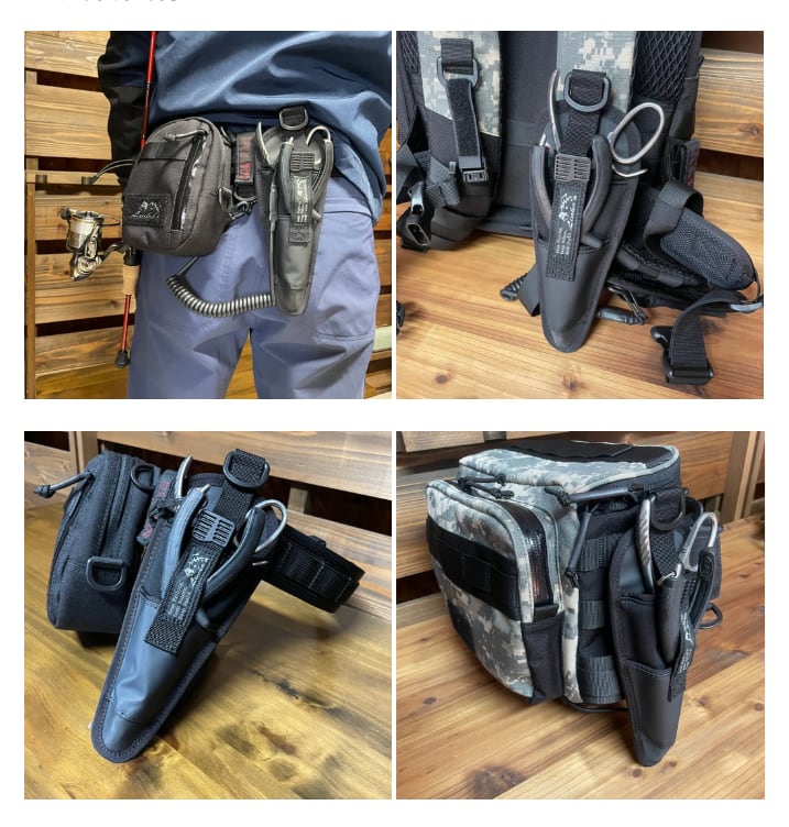 上段は大型プライヤーや雷魚ゲーム等で使われるマウスオープナー、下段に一般的なプライヤーやスプリットリングプライヤー等を収納する事が可能です。