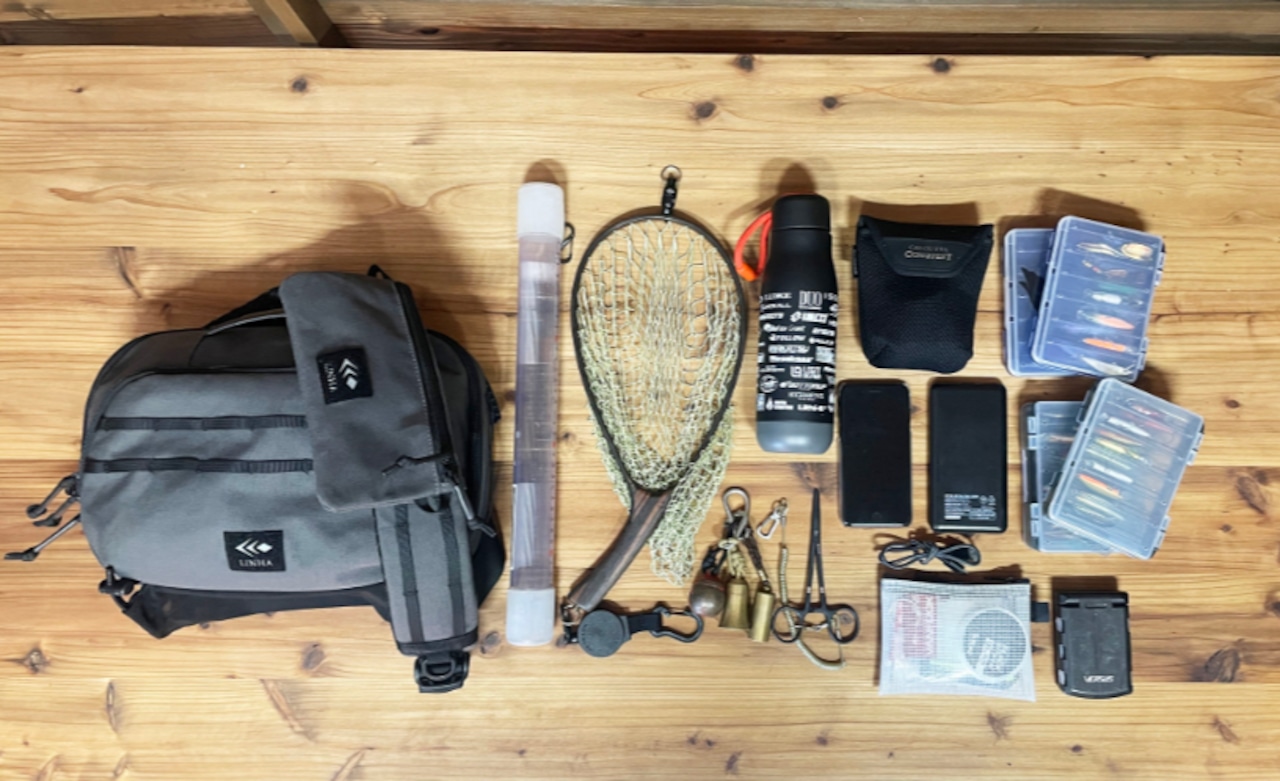 開発コンセプトはズバリ「一日に必要なタックルを効率良く収納出来、左右どちらでも使えること」「ランディングネットもストレスなく携行出来れば最高!」という具合。