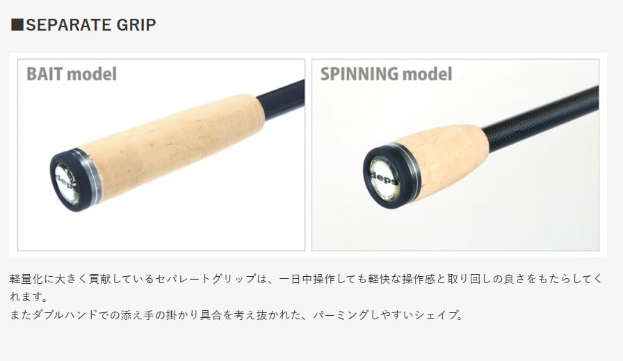 レングス:7.4ft ルアー:3/8-2.5oz ライン:12-25lb アクション:ヘビーレギュラーファストテーパー グリップ:408mm(グリップ脱着式) 自重:約141g
